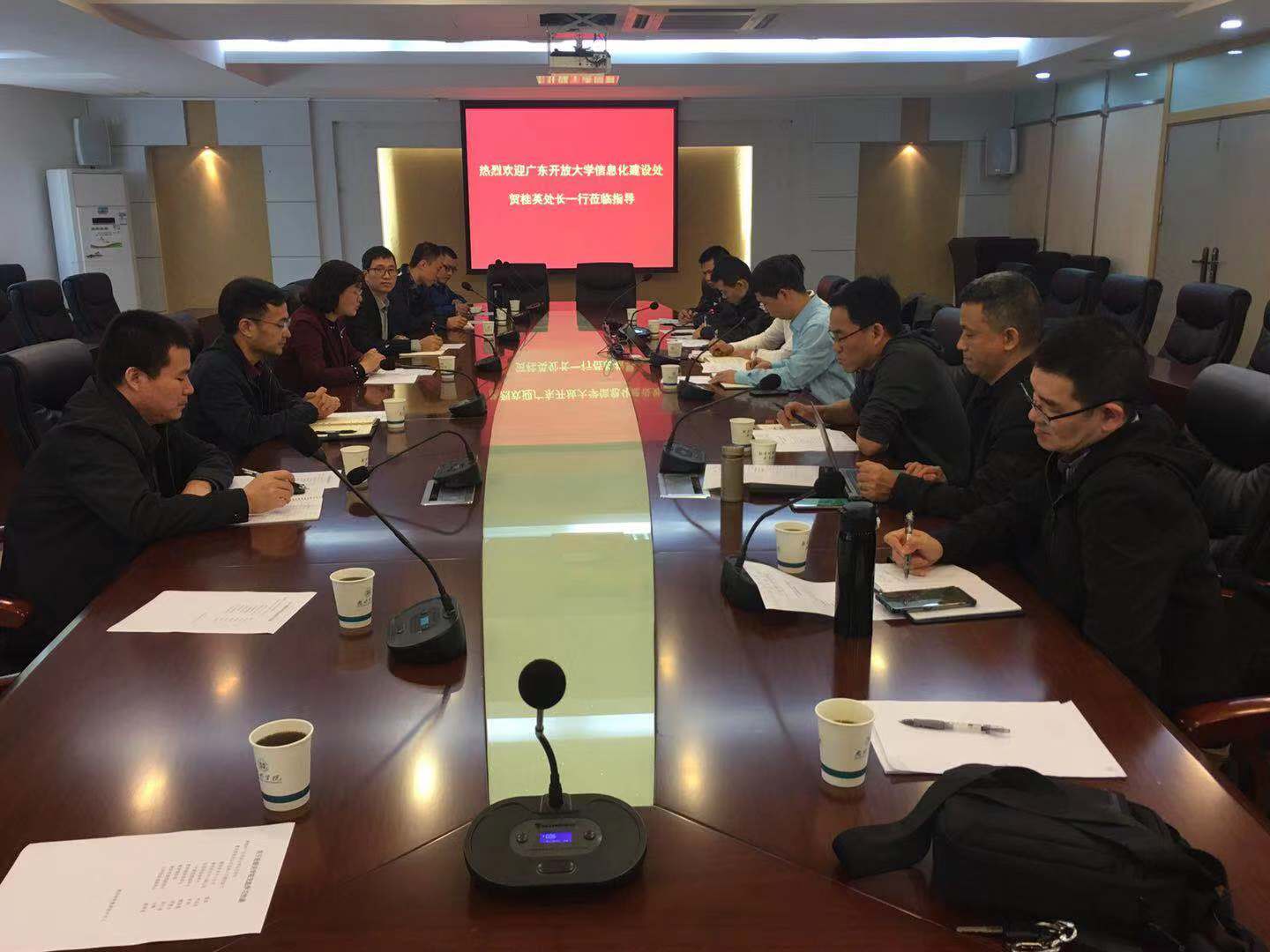 会上,教育技术中心陈军主任就我校近年来信息化建设情况及正在着力推进的相关工作做了全面的介绍,广东开放大学贺桂英处长也介绍了他们的网络安全与信息化工作经验。随后双方就信息系统建设、网络安全、智慧课室建设、线上课程建设与培训、本科评估等方面的具体工作进行了深入交流。双方表示,希望今后加强双方交流,增进彼此友谊,取长补短。